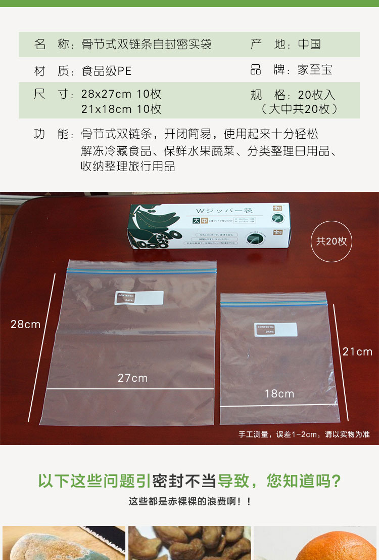 【家至寶】雙鏈條骨節(jié)式自封袋
