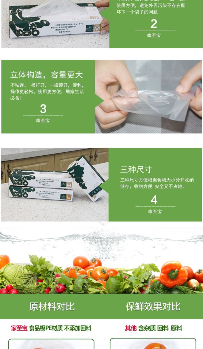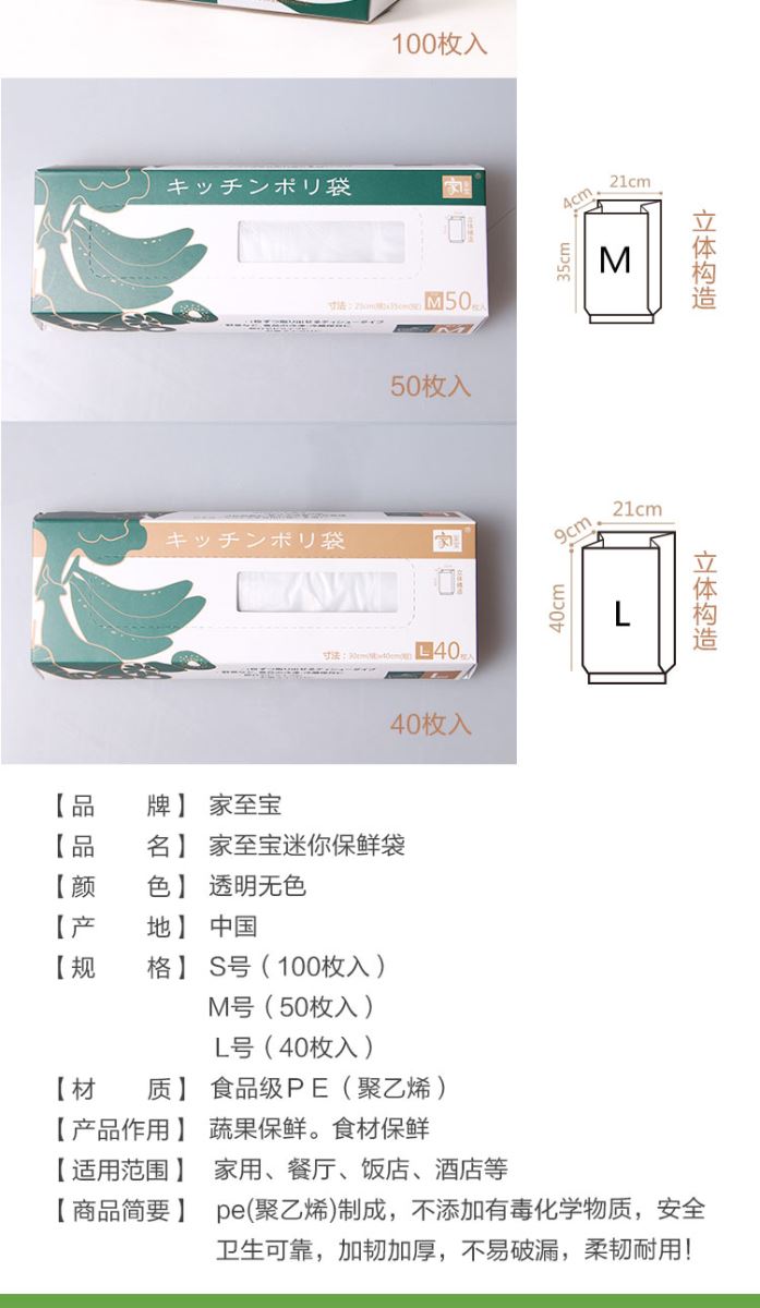 冰箱用品 > 冰箱收納 【家至寶】食品保鮮袋50枚入