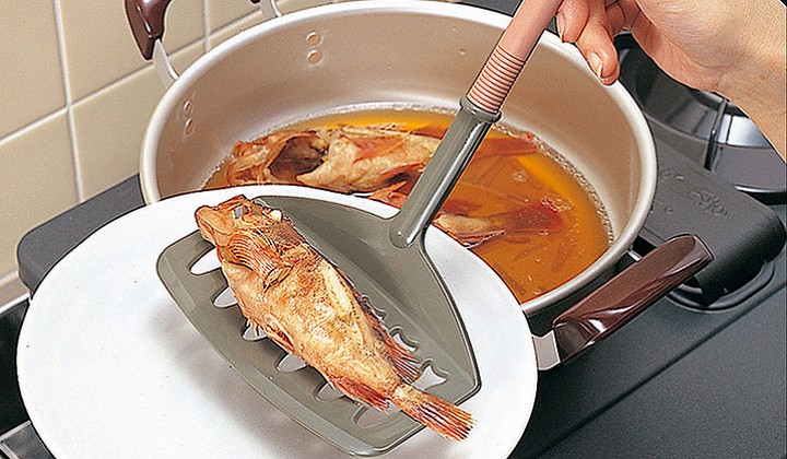 特點:鏤空寬口設(shè)計,保證魚身的完整;防滑手柄,掛孔設(shè)計,取用自如;優(yōu)質(zhì)材料,環(huán)保安全。