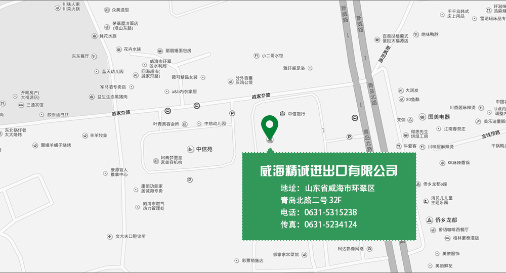 Copyright ? 2015 版權(quán)所有:威海精誠進出口有限公司 電話:0631-5315238、5234124